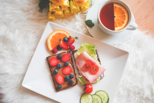 Grilled Asparagus with Creamy Sweet Potato Sauce and Crispy Rosemary